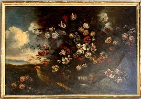 Ignoto del secolo XIX "Fiori" olio su tela (cm 94,5x130). In cornice