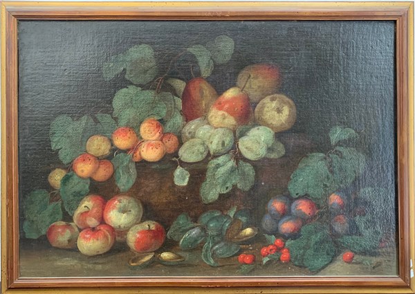 Ignoto "Composizione con uva, pesche, fichi, melograno e zucca" antico dipinto