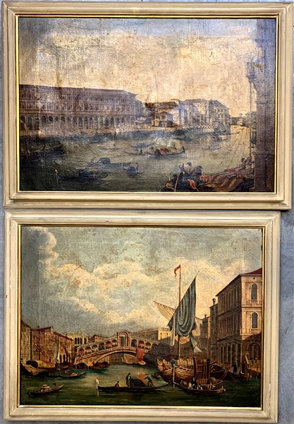 Scuola del secolo XIX "Vedute di Venezia" coppia di dipinti ad olio su tela (cm