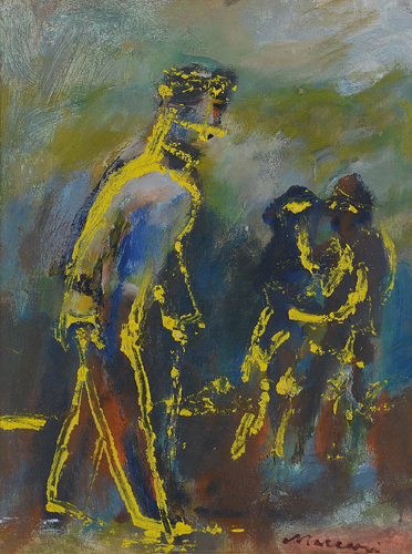 MINO MACCARI Siena 24/11/1898 - Roma 17/06/1989 Senza titolo, anni '80 olio su cartone telato cm. 40x30, firma in basso a destra, opera registrata presso l'Archivio delle Opere del Maestro Mino Maccari al numero 2348 come da dichiarazione a cura di Marco Maccari su foto.
