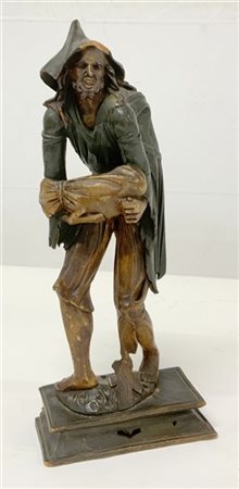 Figura in legno policromo raffigurante mendicante. Veneto, secolo XVIII (h. cm 28) (difetti)
