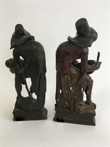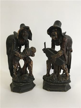 Artista Veneto secolo XIX "Figure popolari" due gruppi in legno laccato (h cm 26) (difetti)
