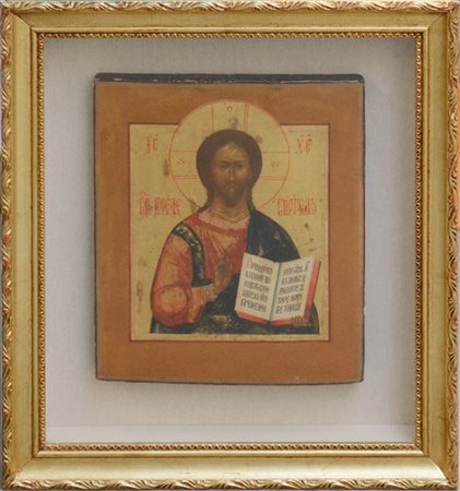 Arte russa, secolo XIX "Cristo pantocratore" icona ad olio su tavola (cm 31x26)