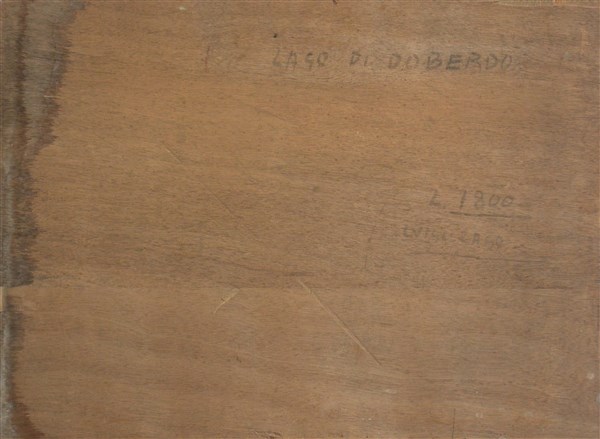 "Lago di Doberdò" olio su compensato (cm 44.5x60) Firmato in basso a destra. Al retro: titolato e firmato (difetti)