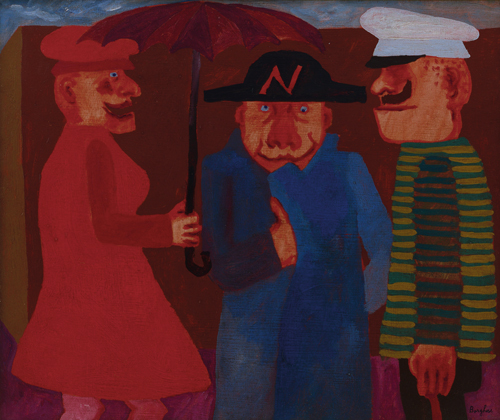 FRANZ BORGHESE Roma 21/01/1941 - Roma 17/12/2005 Napoleone (I Folli), (1974) olio su tela cm. 50x60, firma in basso a destra, titolo, firma ed etichetta della Galleria Torbandena (TS) al retro, opera registrata presso l'Archivio Generale Studio Franz Borghese (MI) al numero 22/10 come da dichiarazione su foto.