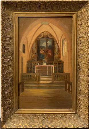 Ignoto "Interno di chiesa" olio su tela (cm 50x29) In cornice (difetti)