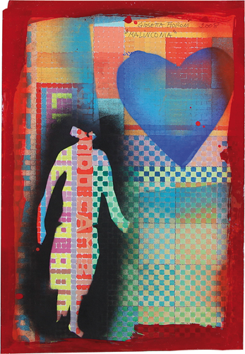 GIOSETTA FIORONI Roma 24/12/1932 Malinconia, 2008 tecnica mista su carta cm. 50x35, firma, titolo e anno in alto, dichiarazione d'autenticità dell'artista e timbro della Mediart su foto.
