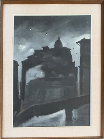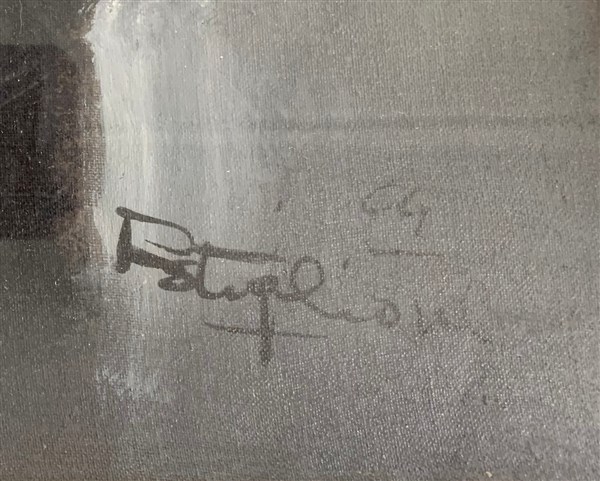 Firma indecifrata "Senza titolo" 1964, olio su tela (cm 70x50) firmato e datato in basso a destra. In cornice