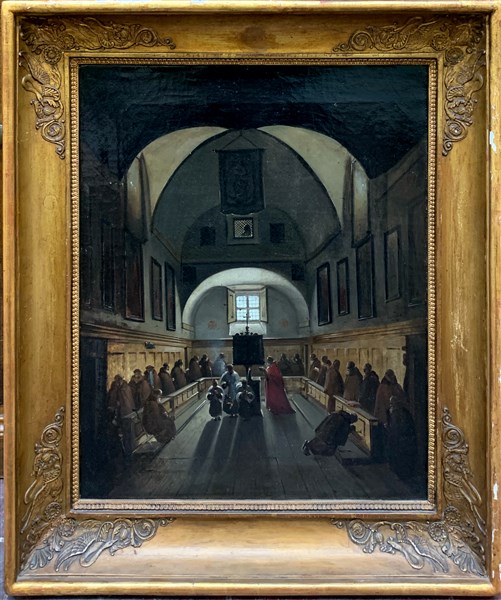 Artista francese del XIX Secolo "La preghiera" olio su tela (cm 53x42) In corni