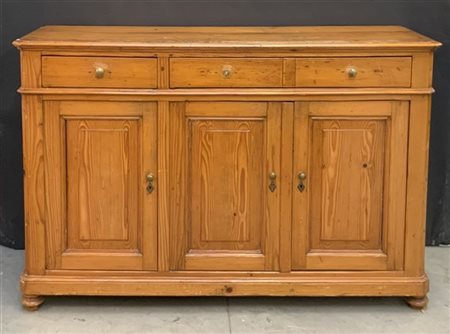 Credenza in legno dolce a due cassetti e tre ante con piedi anteriori torniti.