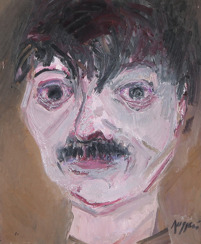 PIERO RUGGERI Torino 27/04/1930 - 14/05/2009 Ritratto del poeta Vasco, 1979 olio su tavola cm. 30x25, firma in basso a destra, titolo, firma, anno e tecnica al retro, opera registrata presso la Fondazione Piero Ruggeri (Avigliana-TO) come da dichiarazione su foto.