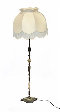 Lampada da terra in metallo e onice, paralume in stoffa (h cm 183) (difetti)