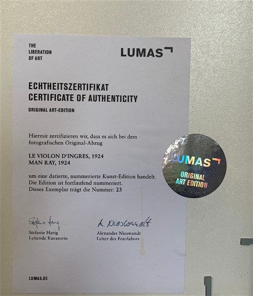 Da Man Ray "Le violon d'Ingres" riproduzione fotografica (immagine cm 21x16; opera con cornice cm 36,5x32,5). Edizione Lumas (etichetta al retro)