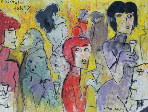 FRANCO ROGNONI Milano 20/09/1913 - Milano 11/03/1999  Cocktail party olio su tela cm. 60x80, firma in basso a destra, titolo in basso a sinistra, dichiarazione d'autenticità dell'artista su foto.