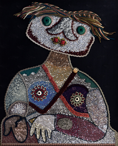 ENRICO BAJ Milano 31/10/1924 - Varese 15/06/2003 Dama, 1972 paillettes e...
