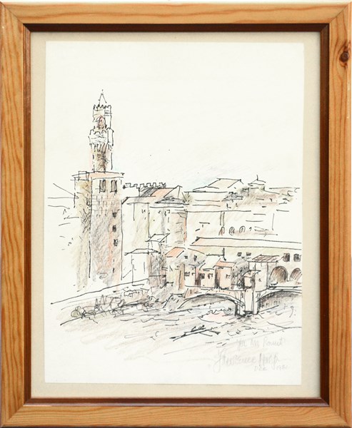 "View of Florence" 1981 mixed media (28x27 cm), signed, dedicated and dated lower right