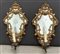 Coppia di ventole in legno dorato e intagliato a volute, portacandele in metall