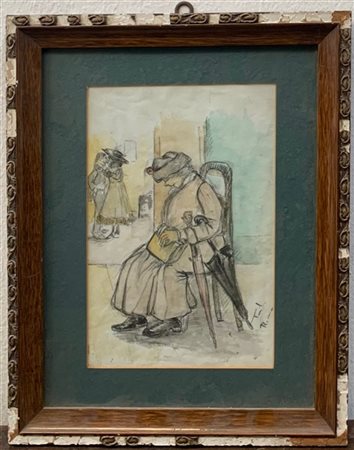 Firma indecifrata Tecnica mista su carta applicata su masonite (cm 36,5x28,5), f