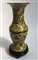 Manifattura orientale, vaso a balaustro in ceramica gialla con base in legno, s