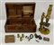 BOUQUET PARIS Microscopio in ottone, in scatola di legno con numerosi inserti.