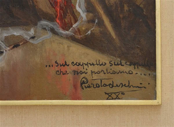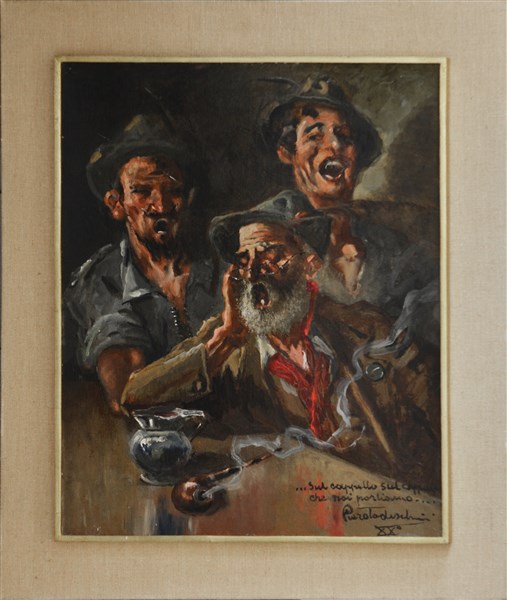 Piero Todeschini "Gli alpini" XX E.F., olio su cartone (cm 60x50) Firmato e data