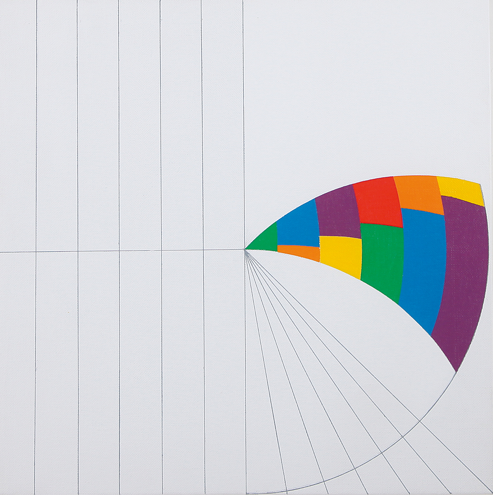 LORENZO PIEMONTI Carate Brianza (Mi) 26/04/1935  Cromoplastico M215, 1984 tecnica mista su tela cm. 50x50, firma, anno, timbro ed etichetta con archivio dell'artista al retro, dichiarazione d'autenticità e archivio dell'artista su foto.