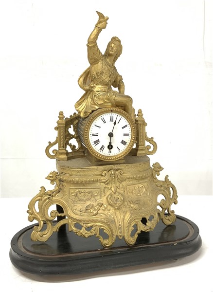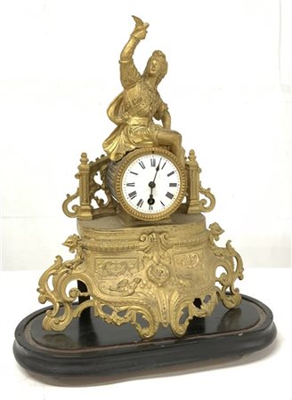 ANONIMO Pendola in antimonio a soggetto di caccia su base in legno. Epoca ultim