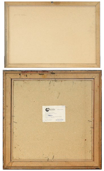 Lotto composto da due dipinti astratti, uno su cartone telato l'altro su compen