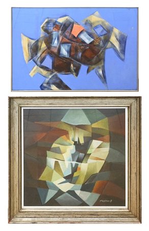 Lotto composto da due dipinti astratti, uno su cartone telato l'altro su compensato, di autori e misure diverse, uno firmato