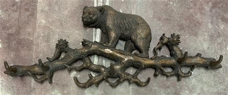 Appendiabiti a cinque pioli in legno intagliato a forma di orso su ramo con occhi in vetro. Foresta nera, secolo XX (l cm 100, h cm 40) (lievi difetti)