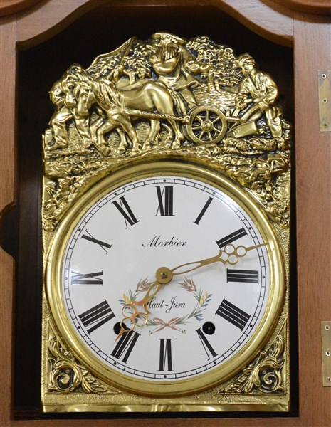 ANONIMO Orologio a cassalunga del tipo Morbier. Produzione recente. Mostra in o