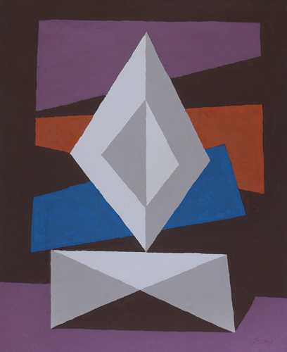 LEON GISCHIA Bax Landes 08/06/1903 - Venezia 1991 Composizione scultorea, 1973 olio su tela cm. 61x50, firma in basso a destra, firma, titolo, anno e archivio al retro, dichiarazione d'autenticità dell'artista su piccola foto.
