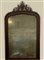 Specchio con cimasa scolpita a figure immaginarie e medaglione centrale con eff