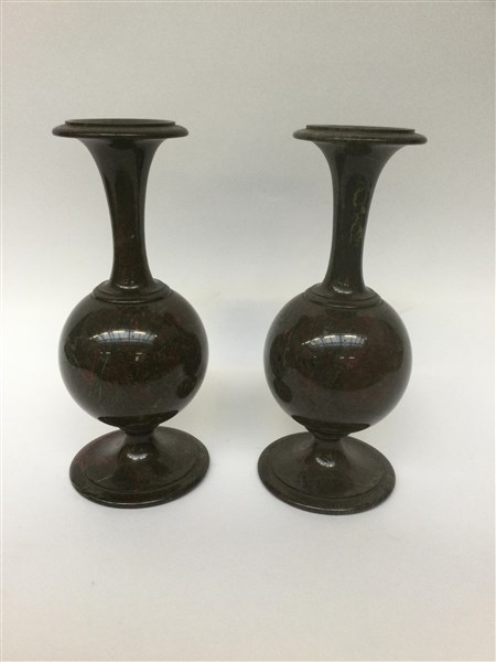 Coppia di vasi in marmo tornito. Italia, secolo XX. (h cm 30)