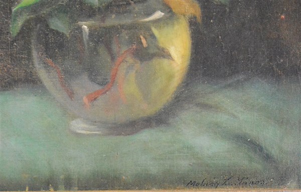 Janos Z. Molnar "Vaso con rose" olio su cartone pressato (cm 38x27,5) Firmato in