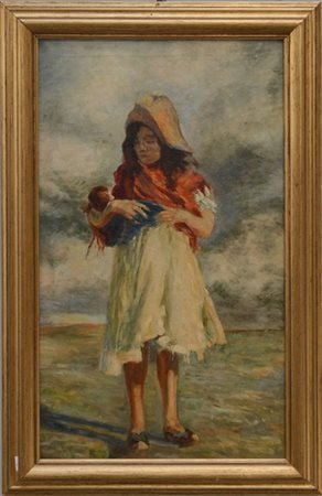 Copia da Beppe Ciardi (Venezia 1875 - Quinto 1932) "Bimba con la bambola" olio su tela (cm 64x38) In cornice