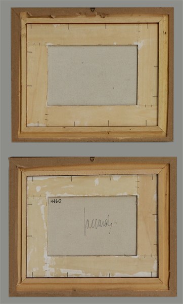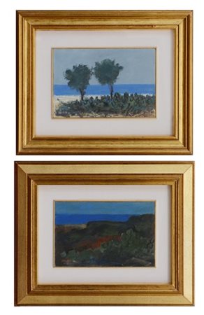 Carlo Saccardi Lotto di due dipinti ad olio su masonite raffiguranti paesaggi, m