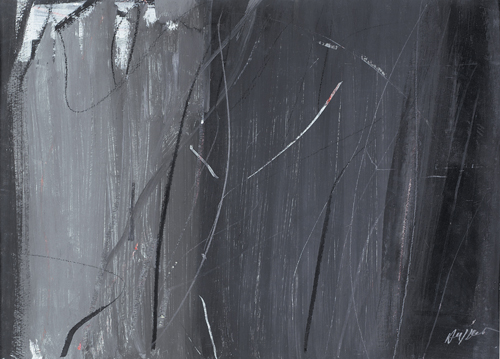 PIERO RUGGERI Torino 27/04/1930 - 14/05/2009  Senza titolo, 1991 tempera su cartoncino cm. 42x57, firma in basso a destra, firma e anno al retro, opera registrata presso la fondazione Piero Ruggeri come da dichiarazione su foto.