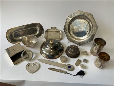 Lotto composto da diversi oggetti in argento di forma e decoro differente (g lo