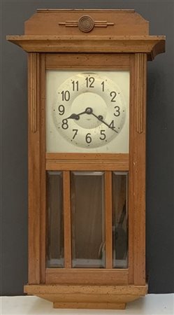 ANONIMO Pendola da parete in legno e vetri. Epoca anni 30’. Quadrante in lamier
