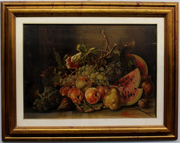 Bugatti (secolo XX) "Natura morta con frutta" olio su tela (cm 50x70) firmato i