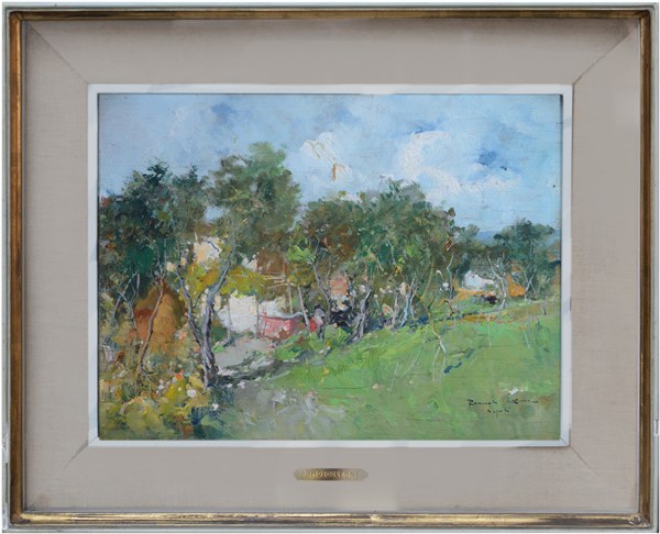 Romolo Leone "Paesaggio" olio su compensato (cm 30x40) Firmato e locato Napoli i