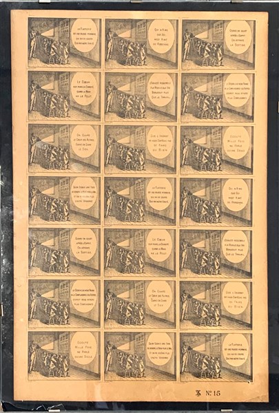 Foglio di figurine da ritagliare raffiguranti vignette con aforismi in lingua francese (cm 47x30) (difetti)