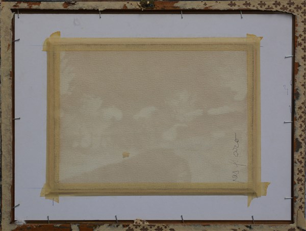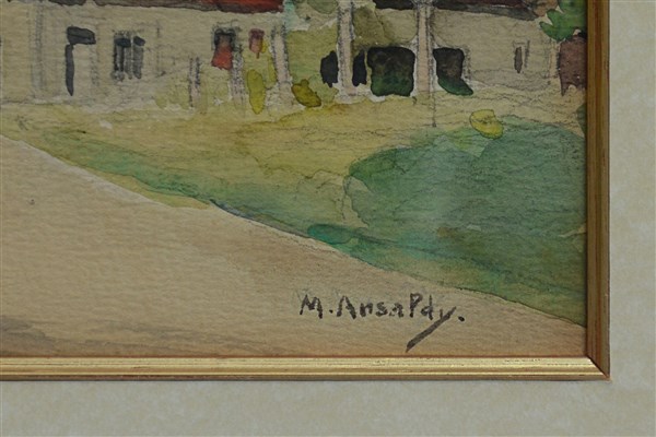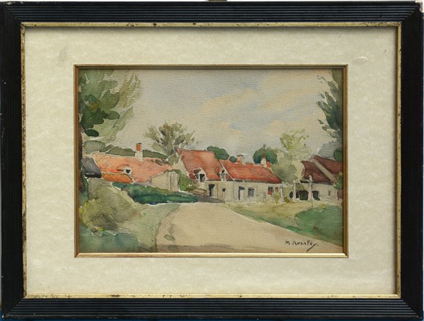 Firma indecifrata "Veduta di borgo rurale" acquerello su cartoncino (cm 19x27) Firmato in basso a destra, in cornice
