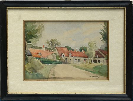 Firma indecifrata "Veduta di borgo rurale" acquerello su cartoncino (cm 19x27)