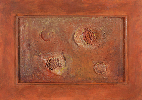 ALDO CIABATTI Arezzo 04/12/1939 Viaggio nel tempo, 2012 tecnica mista con colori ad encausto su tavola cm. 49,5x70 (con cornice invasa), firma, titolo e anno al retro, dichiarazione d'autenticità dell'artista su foto.