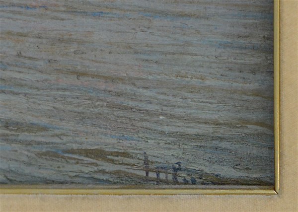 Firma indecifrata "Veduta costiera" olio su cartone (cm 35x51) Firmato in basso