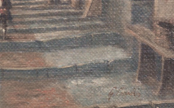 G. Carelli "Veduta di paese con figure" olio su tela (cm 33x23) Firmato in basso