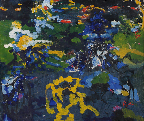 ANTONIO VANGELLI Roma 23/02/1917  Senza titolo, anni '60 olio su tela cm. 50x60, firma in basso a destra e al retro, timbro e firma per autenticità e provenienza della Galleria Il Gianicolo (PG) su foto.
