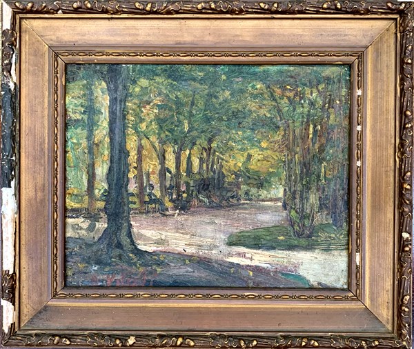 Vitali "Giardini pubblici a Milano" olio su tela (cm 27x34) firmato in basso a sinistra, in cornice